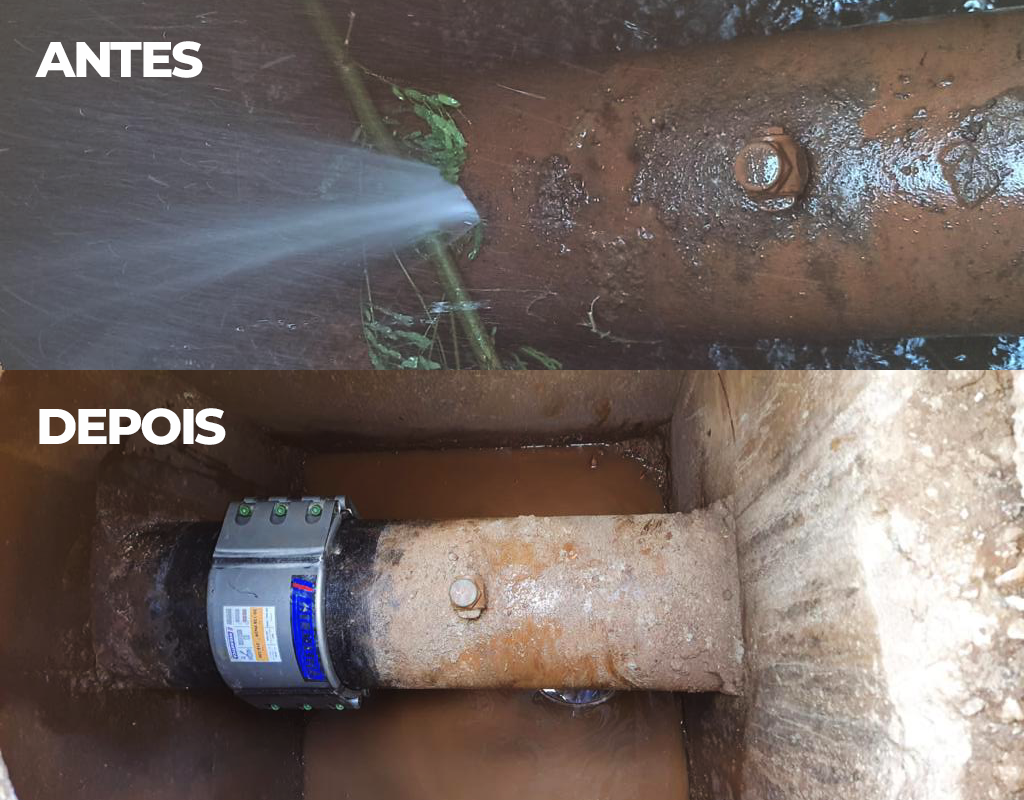 - Reparo emergencial sem paralisação: Instalação rápida mesmo com tubulação sob pressão